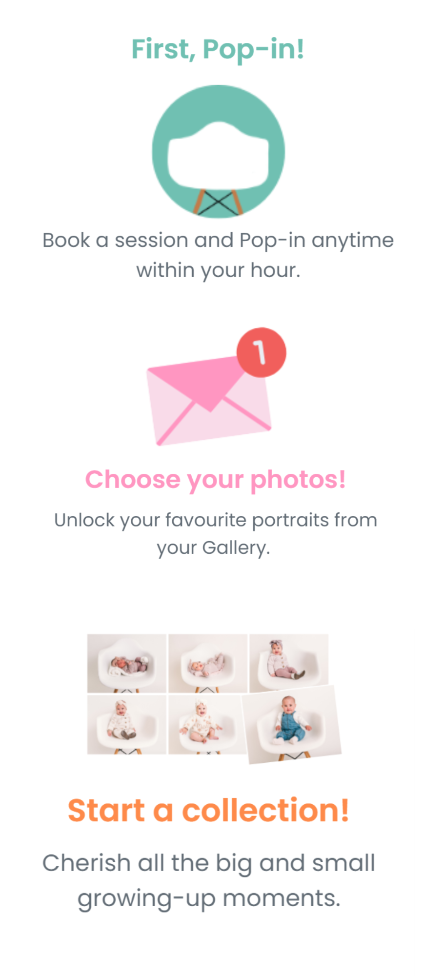 With Pop-ins it's simple to ensure your child's story is captured professionally, and beautifully, to treasure for years to come.