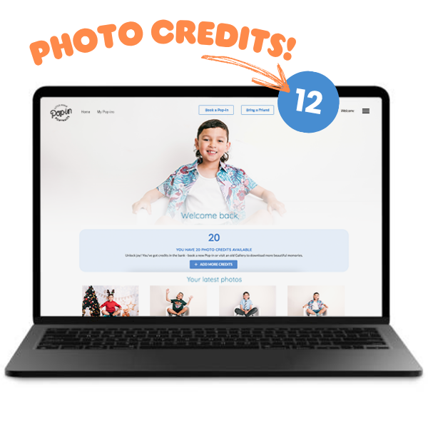 Every Pop-in session includes at least one Photo Credit. It's kept safe in your account until your gallery is delivered (we'd hate for you to use it on another shoot without realising).